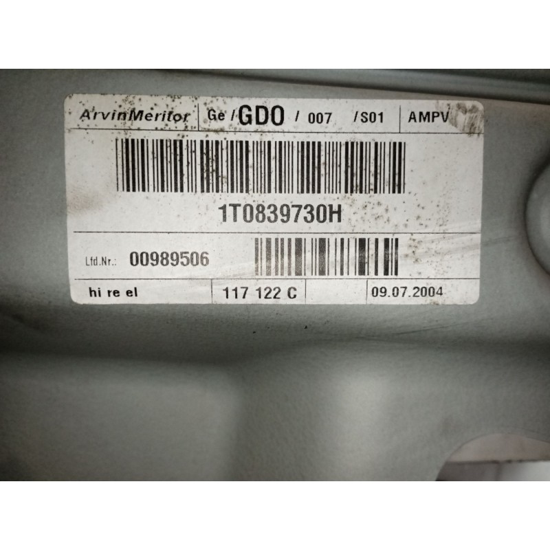 Recambio de elevalunas trasero derecho para volkswagen touran (1t1) 2.0 tdi referencia OEM IAM 1T0839730H